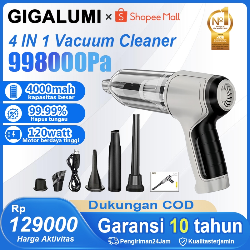 GIGALUMI 998000PA Vacuum Cleaner 4 IN 1 Nirkabel Genggam Penyedot Debu Portabel Daya Tinggi Rumah Tangga Pengisap Kuat D