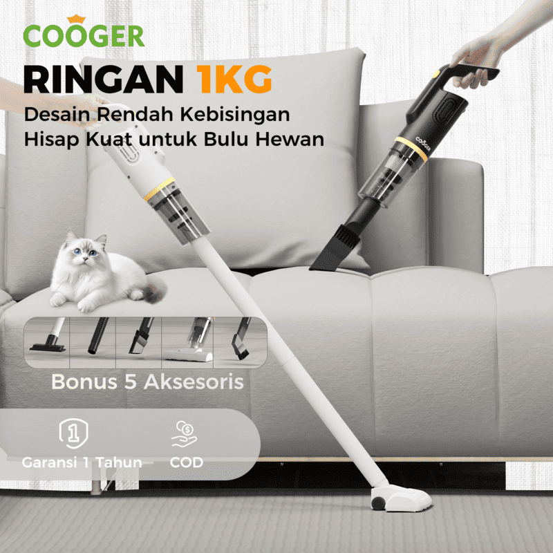 COOGER New Vacuum Cleaner 5IN1 Penyedot Debu Serbaguna Garansi 1 Tahun Dengan Gagang Panjang Warna Hitam Elegan Daya His