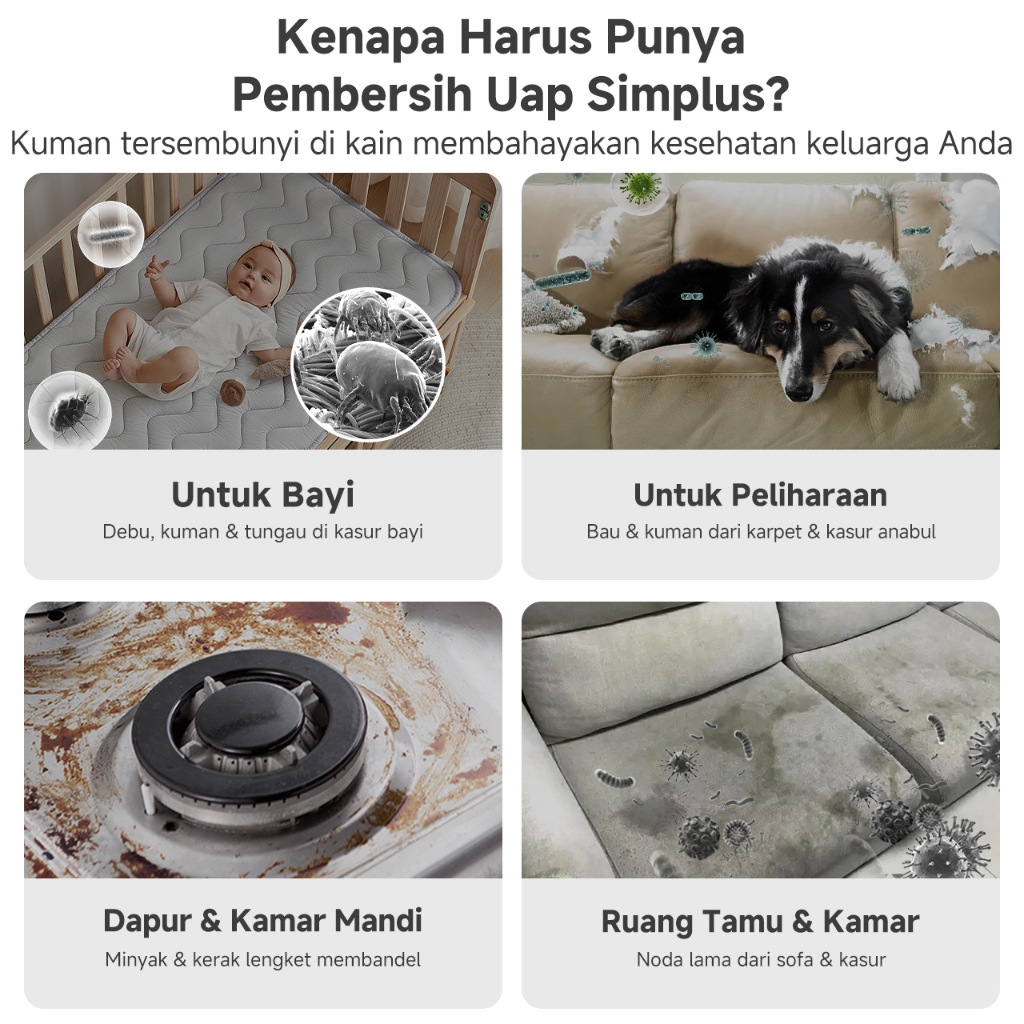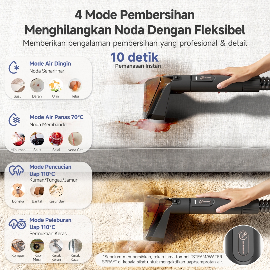 Simplus Pembersih Karpet & Kain Uap 110°C 18.000Pa Tangki Ganda 2,3+1,4L