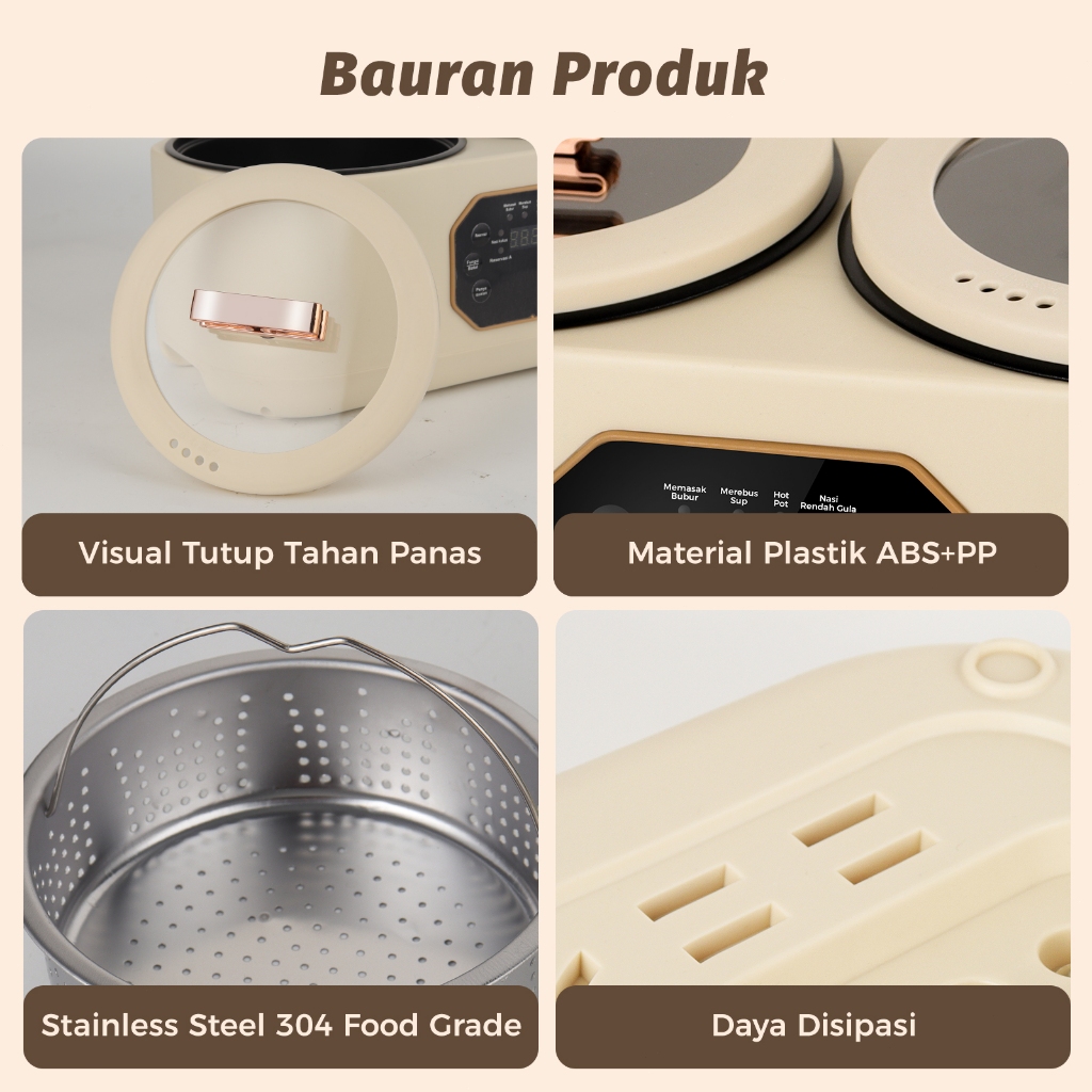 Panci Listrik Double Pot Serbaguna 3.6L , 6IN1/ Panci Rice Cooker Low Carbo / Panci Elektrik Multifungsi Ganda Cerdas