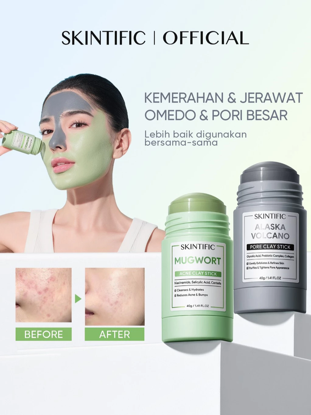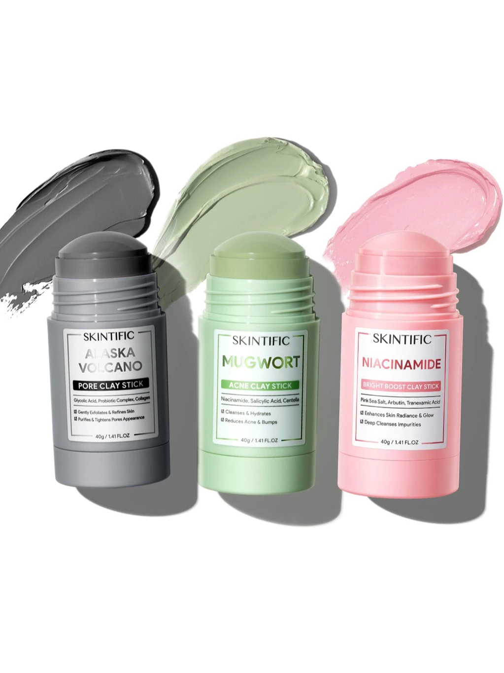 SKINTIFIC Mugwort Acne Clay Stick + Alaska Clay Stick+Niacinamide stick | Skintific Masker Wajah All Series