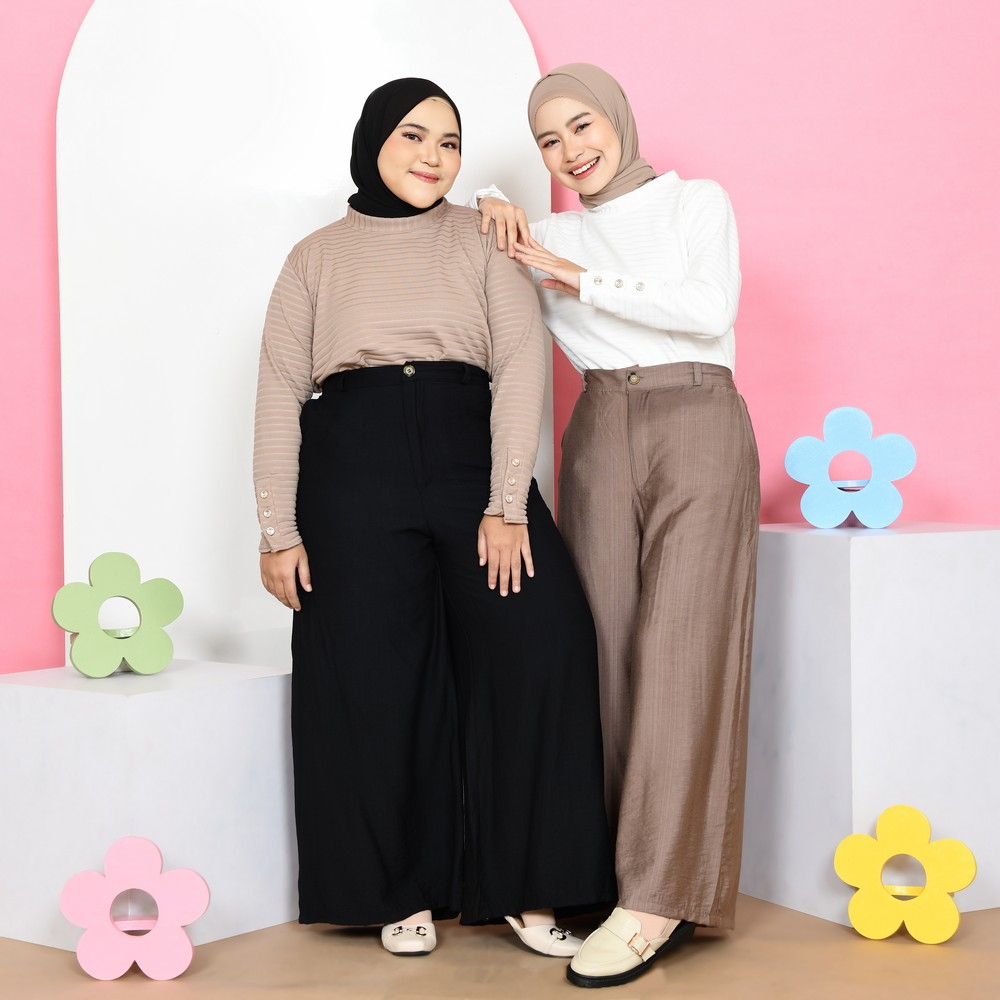 Mybamus Papya Pallazo Pants - Celana Kulot Lebar - Celana Linen - Office Pants