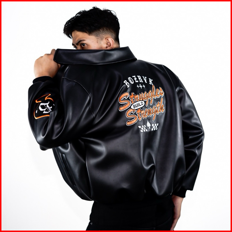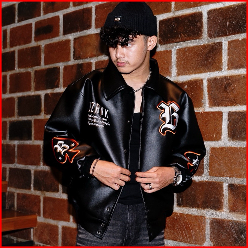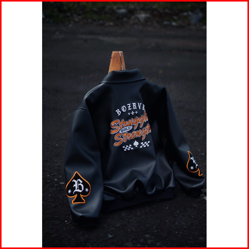 Bozrvk Jaket Varsity Hitam Leather Full Bordir
