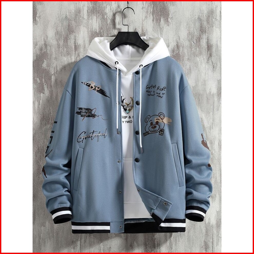Femes Great Ride Bear Baseball Varsity Fleece Tebal Premium Ootd Korean Style Casual Daily