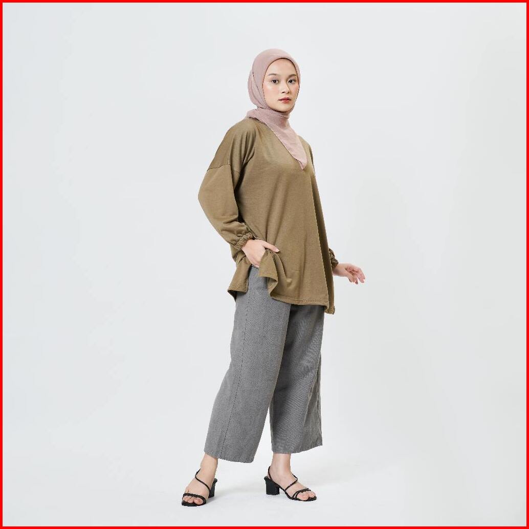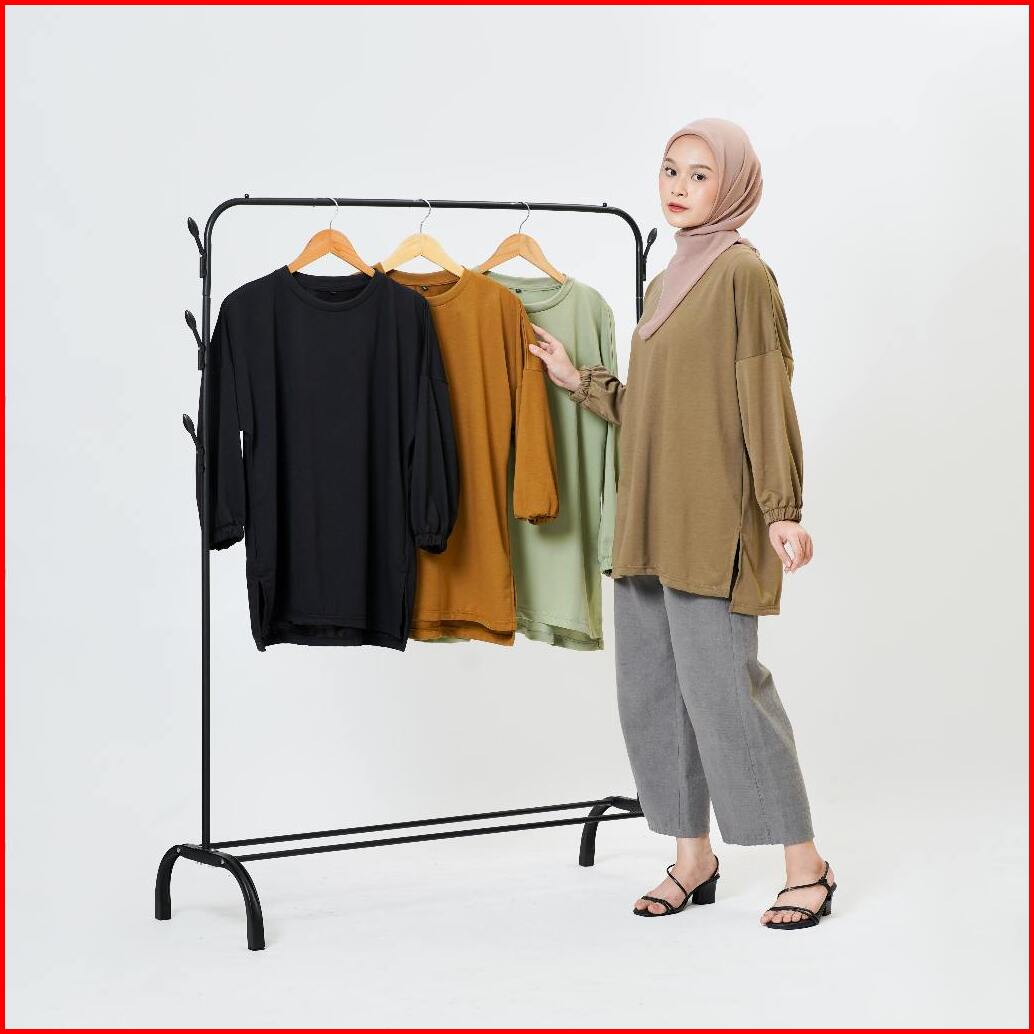 Kaos Aoki Lengan Panjang Oversize Wanita Blouse Lengan Balon Style Hijab Kekikinian
