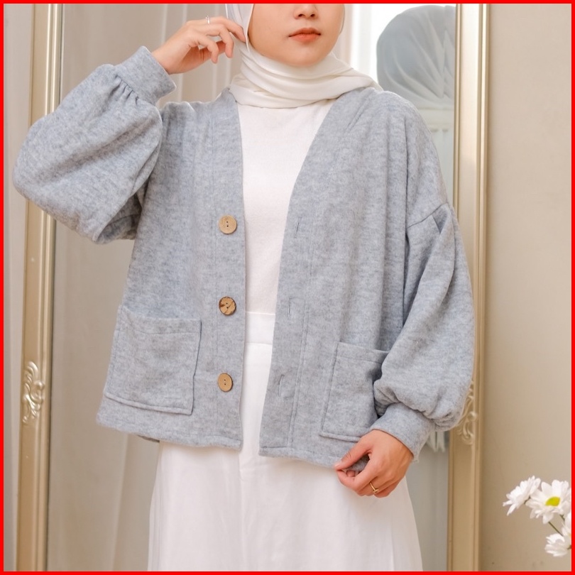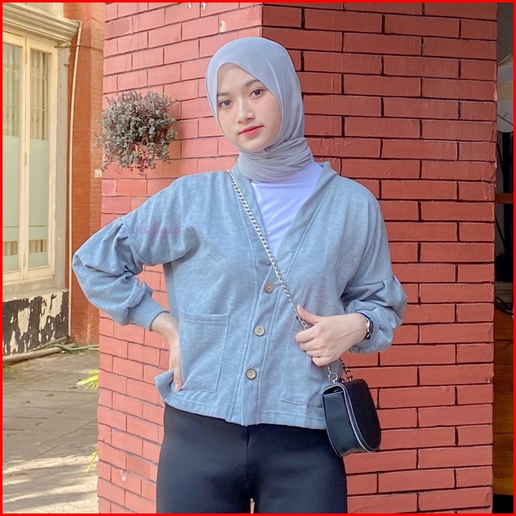 Sweater Wanita Model Cardigan Outer Lengan Puffy Pakaian Wanita Casual Korea