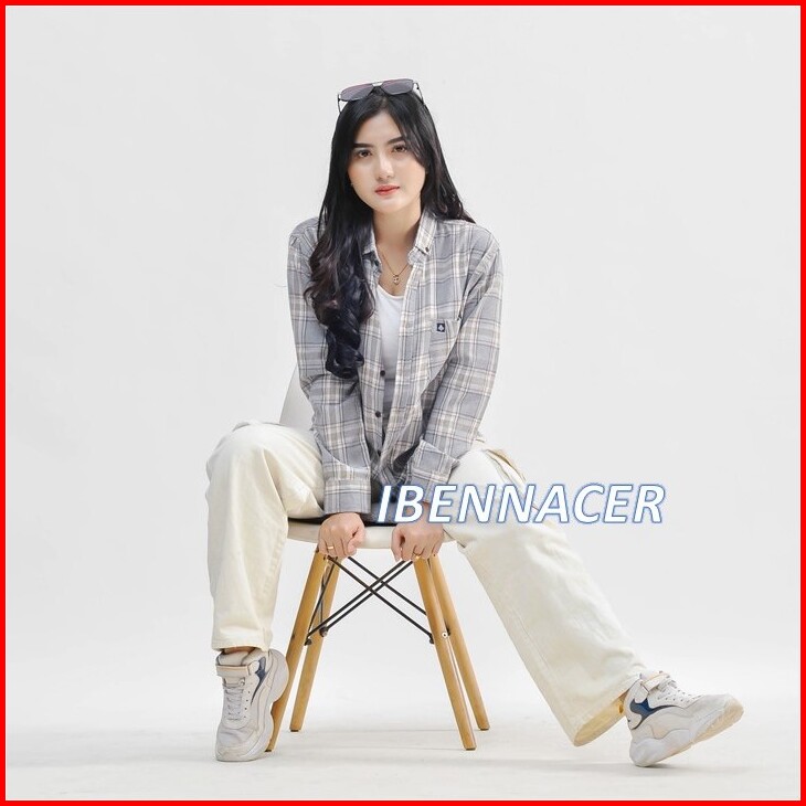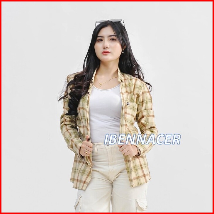 Ibennacer - Atasan Kemeja Flanel Wanita Lengan Panjang Kotak Kotak