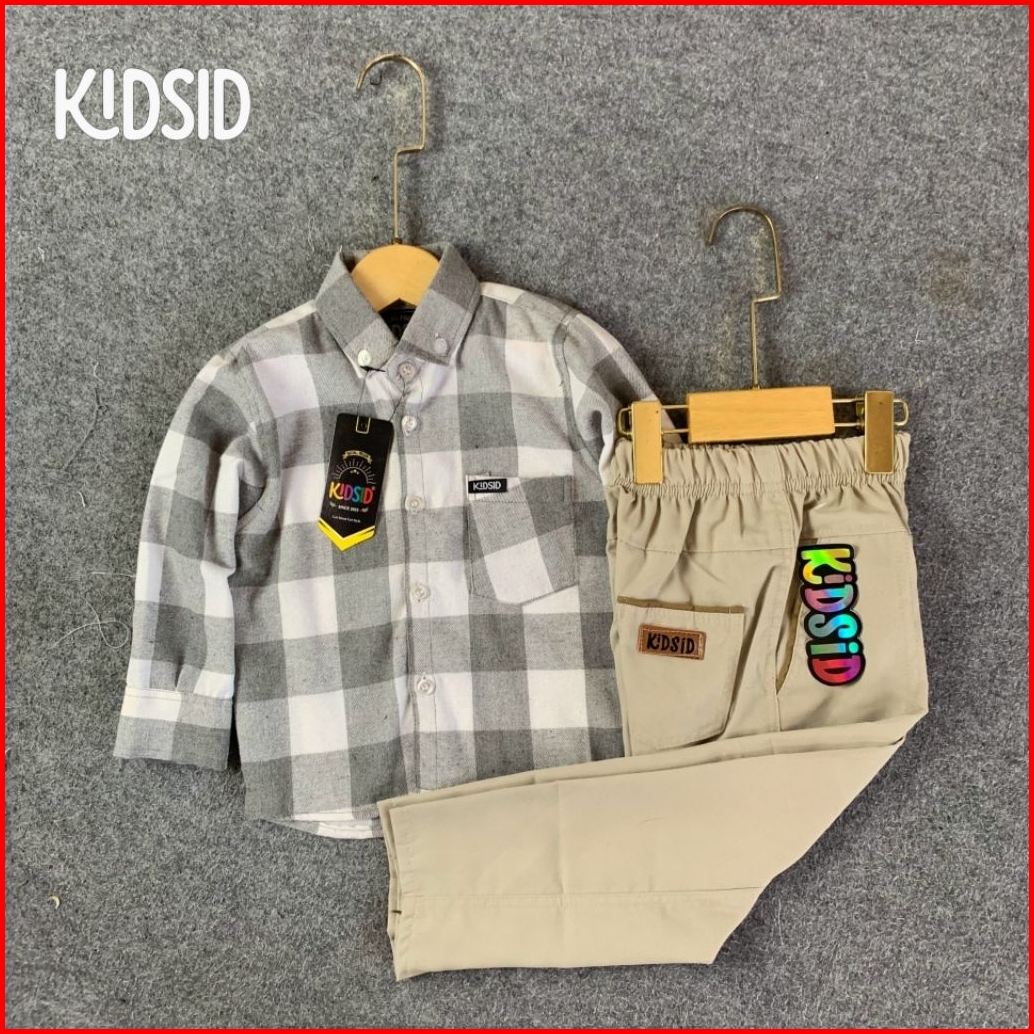 Kidsid Setelan Kemeja Anak Laki Laki Kemeja Flanel Celana Chinos Panjang 1-14 Tahun - Setelan Kemeja Flannel Usia 1 2 3