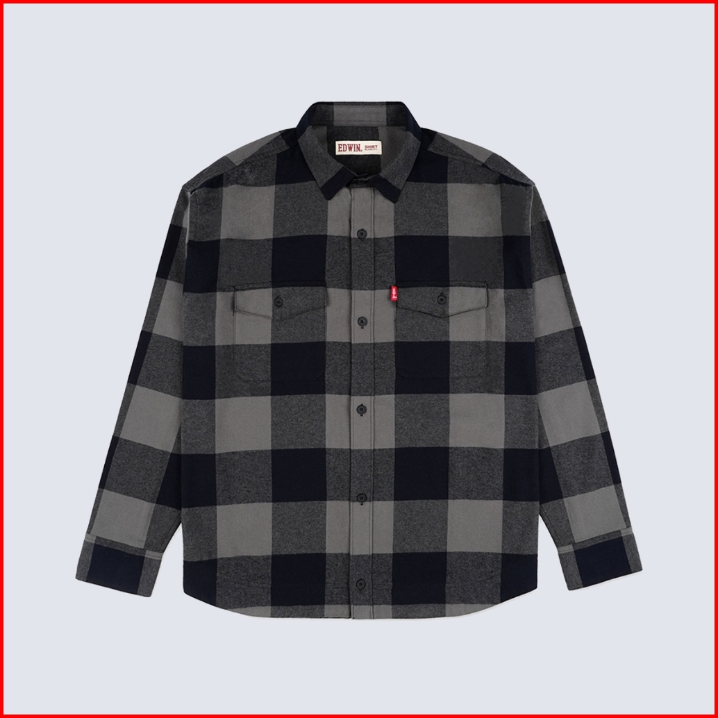 Edwin Jeans - Kemeja Flannel Pria Lengan Panjang Bastien Black Grey