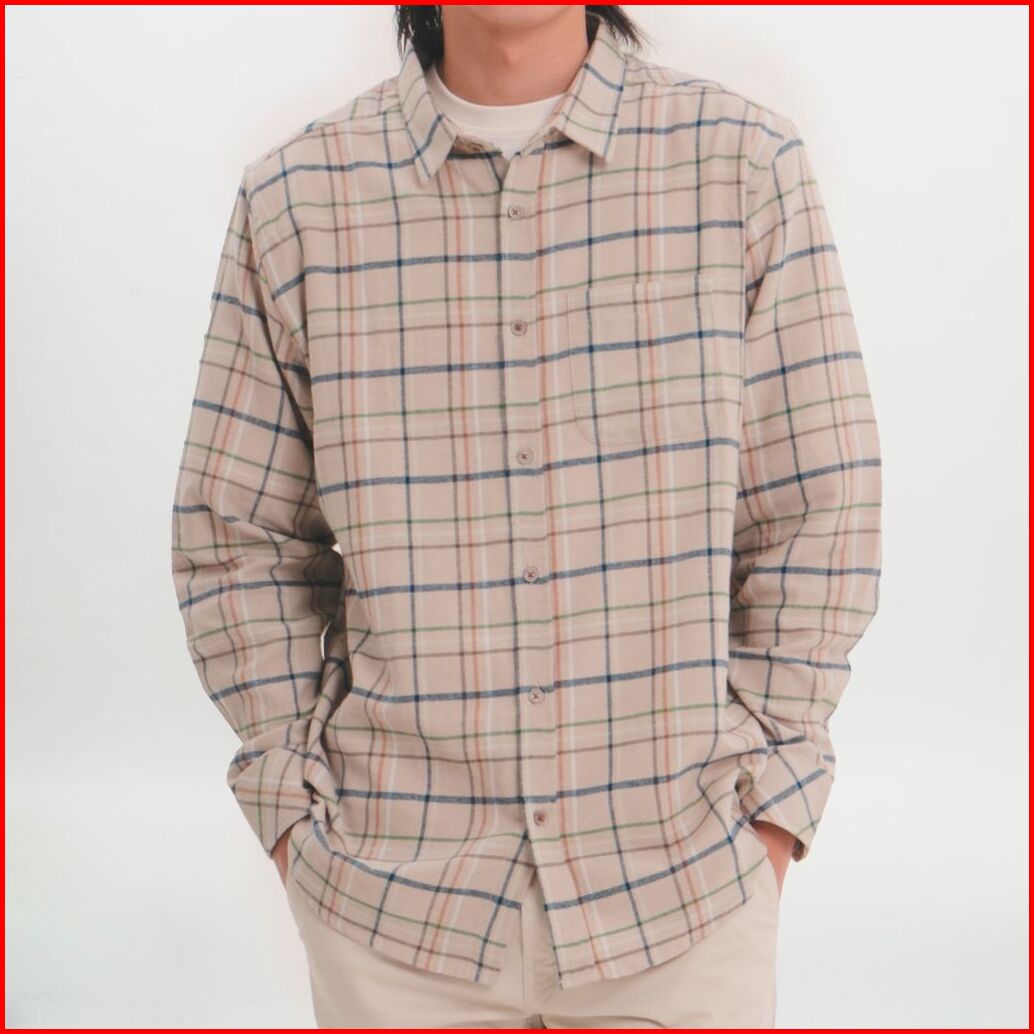 M231 Kemeja Pria Flannel Panjang Khaki 1246