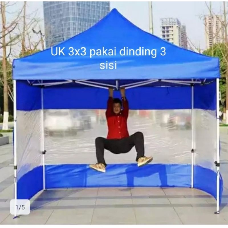 Tenda lipat matic ukuran 3x3 premium tirai 3 sisi ket besi 1,2