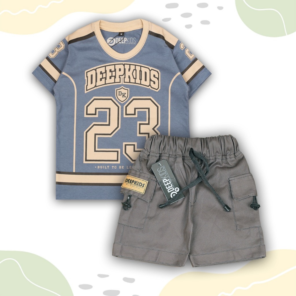 Setelan Anak Laki Laki Kaos Jersey Bahan Cotton Combed dan Celana Cargo Pdk Premium Usia 1 2 3 4 5 6 7 8 9 10 11 12 Tahu