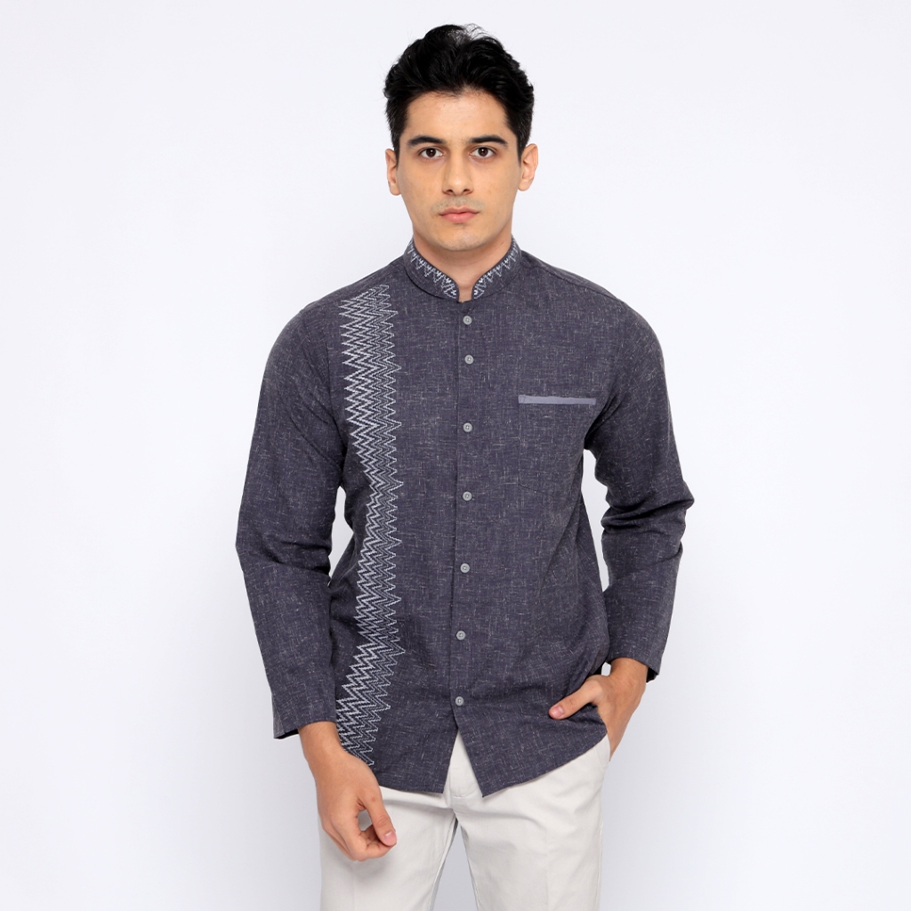 Casella Baju Koko Pria Lengan Panjang Luxury Embroidery