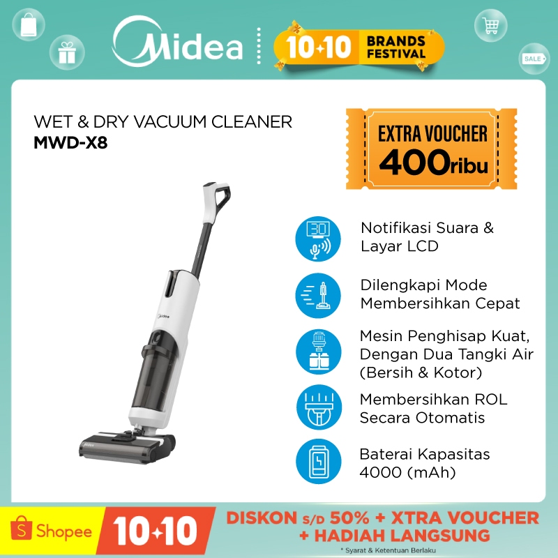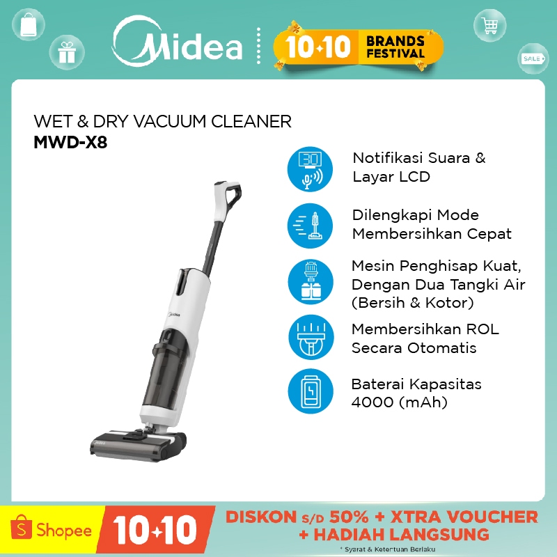 Midea MWD-X8 Cordless Stick Vacuum 3in1 | Wet & Dry Mop Floor Washer | Baterai 4000mAh Runtime 35 Me