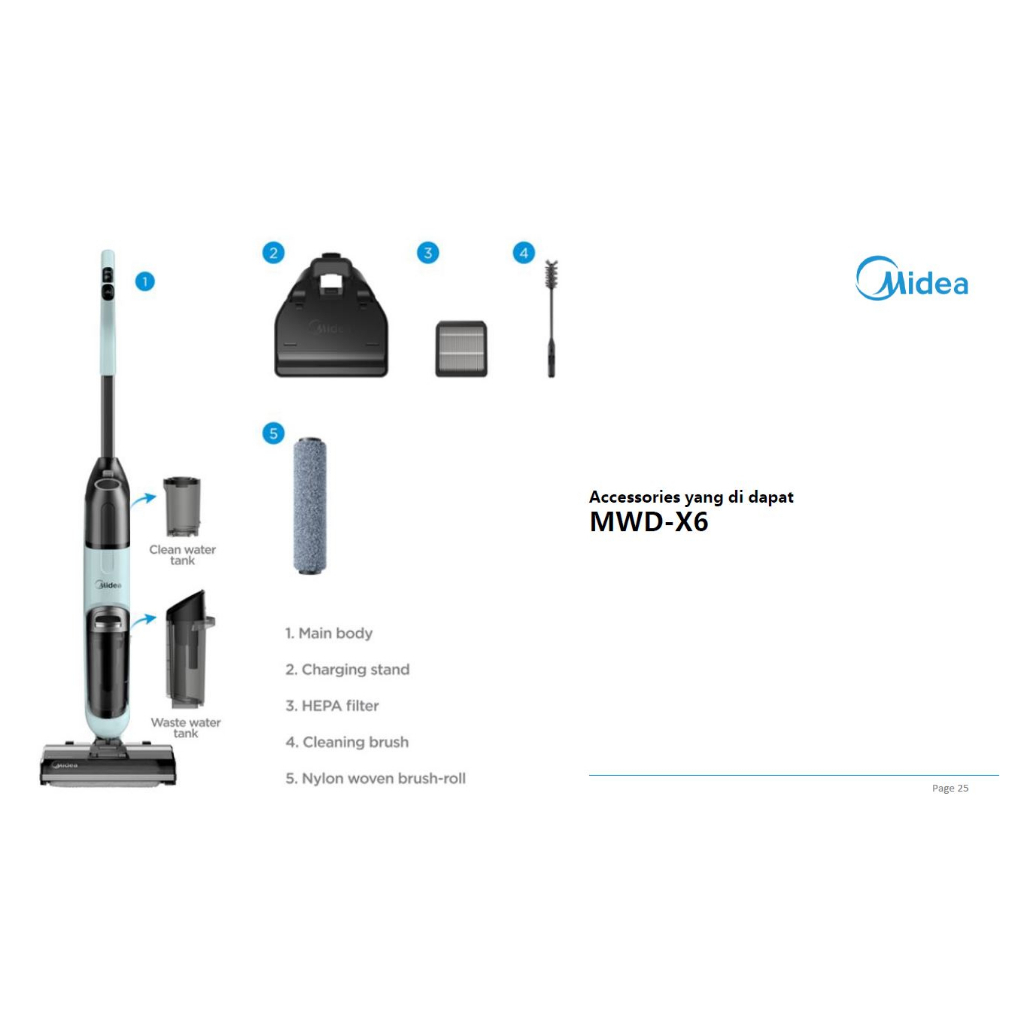 Midea Wet Dry Cordless Smart Vacuum Cleaner MWD-X6 HEPA Penyedot Debu