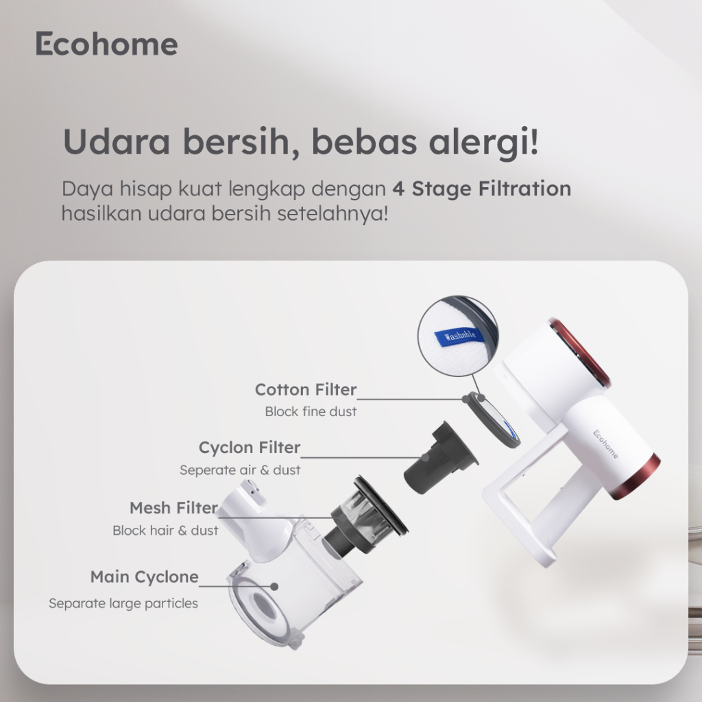 ECOHOME Vacuum Cleaner EVC999 Penghisap Debu Cordless Multifungsi Portable Low Noise