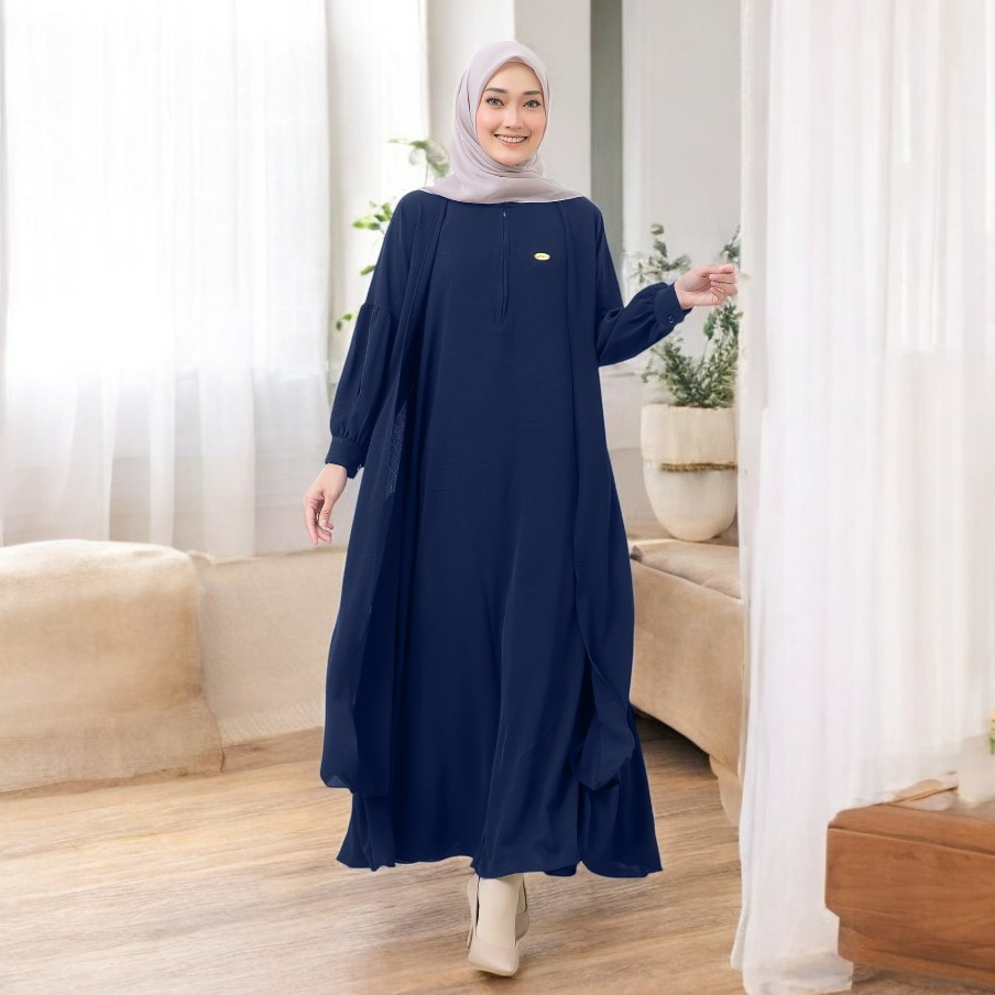 Gamis Polos Variasi Layer Zalenka Dress Size S M L XL Bahan Tifany Twill Baju Daily Wear OOTD Casual