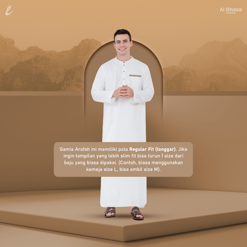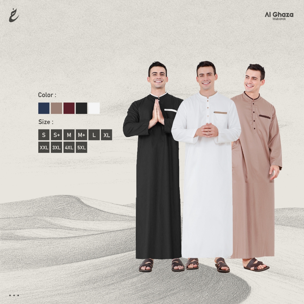 Alghaza Mubarak | Jubah Slim Fit Dewasa Cowok Lengan Panjang | Gamis Arofah Lengan Blong | Reguler Fit