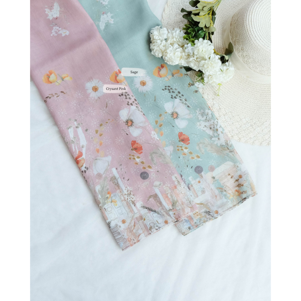 Hijabwanitacantik - Pashmina Zinnia Voal Hijab printing premium Bahan Katun Icy Voal | Pashmina Motif