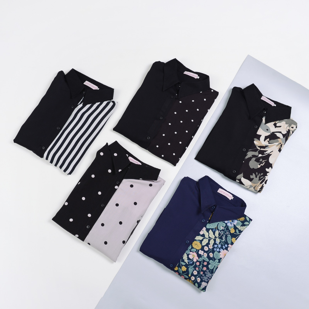 black polka, navy floral, black creamy floral