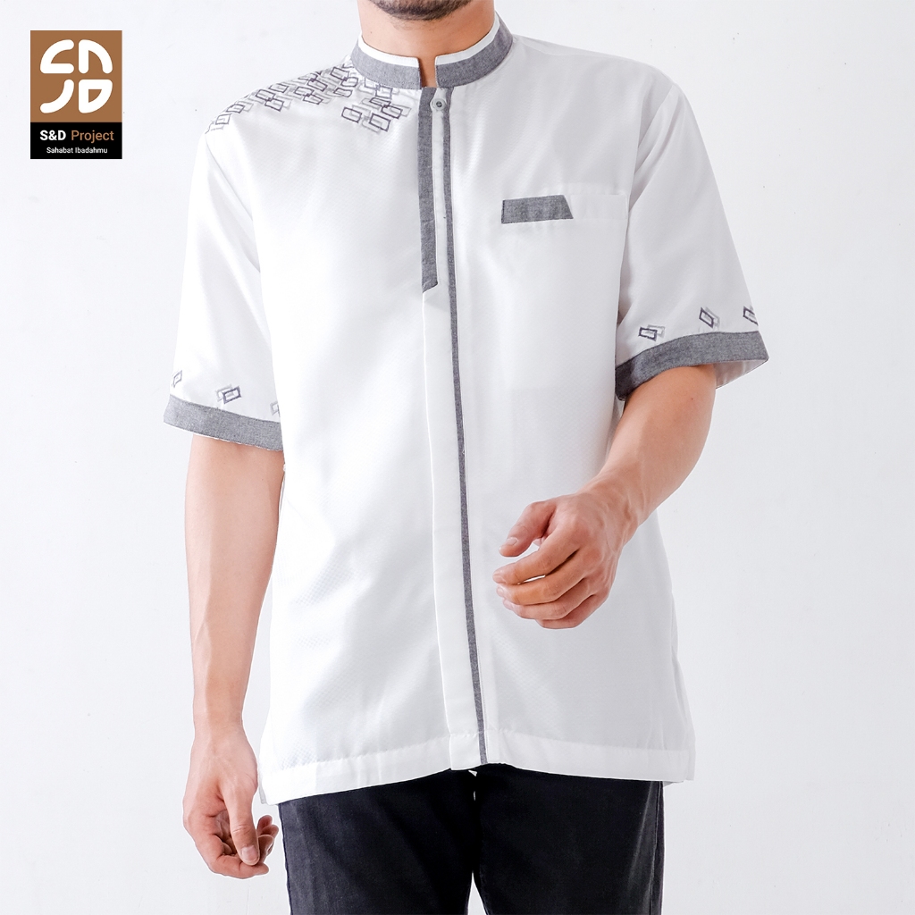 S&D Project Baju Koko Polikatun Bordir Lengan Pendek S M L XL 2XL 3XL 4XL - Seri 25 Putih Tulang