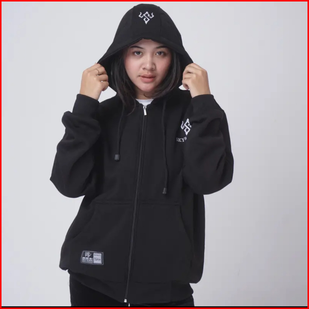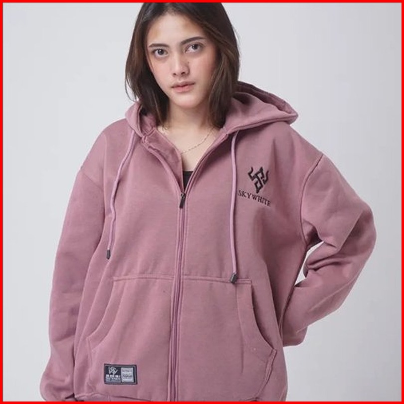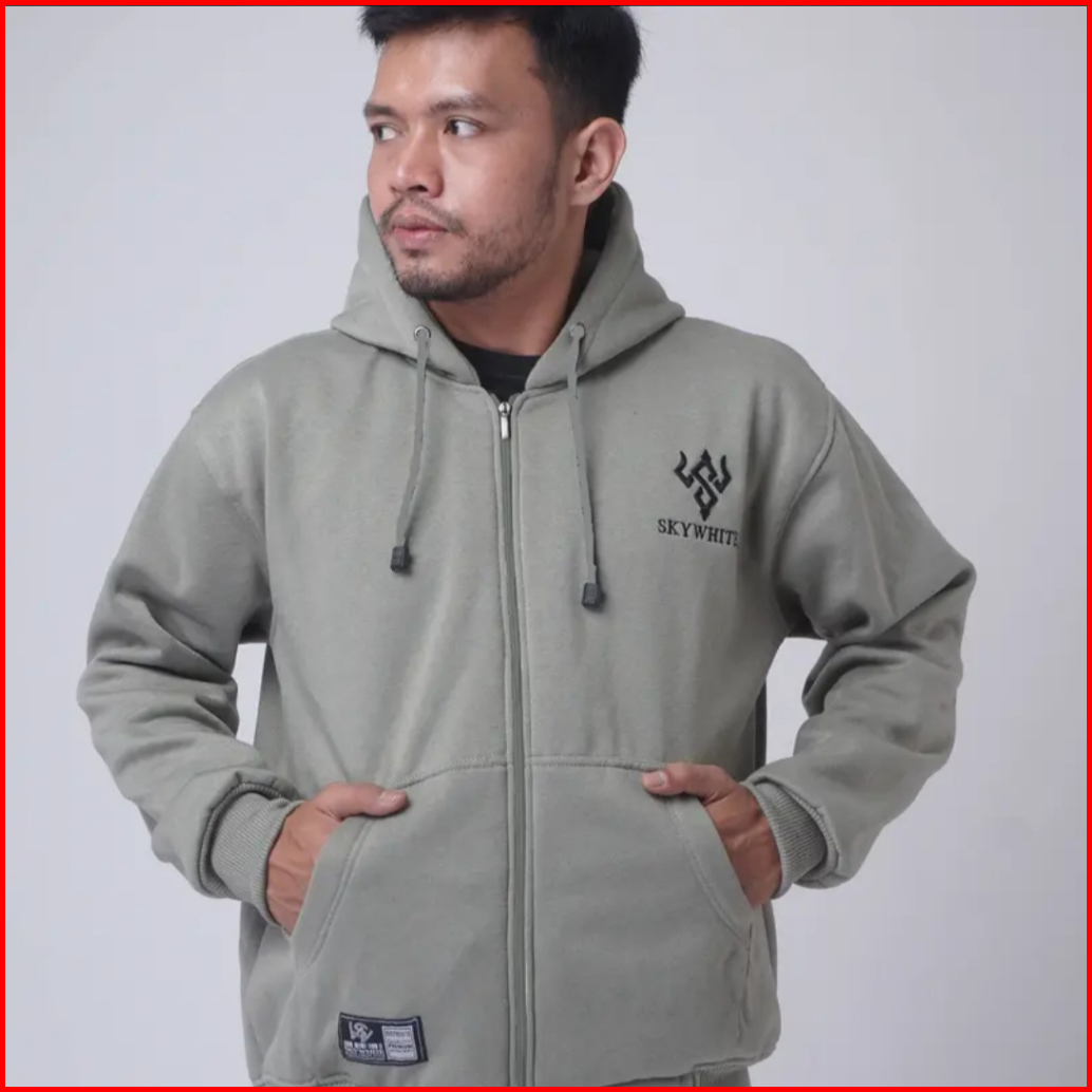 Skywhite Hoodie Sweater Zipper Resleting Katun Hoodie Bordir Bahan Tebal