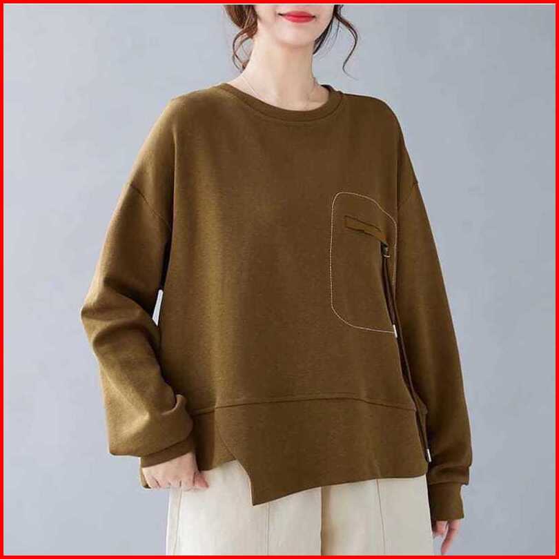Sweatshirt Oversize Wanita Pocket Zipper Kaos Lengan Panjang Style Korean Terbaru