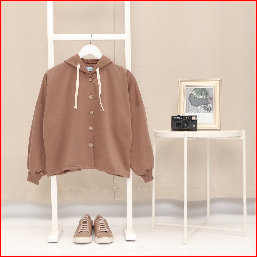 Hoodie Button Sweater Wanita Bahan Fleece Tebal Fashion Kasual Korea Musim Semi
