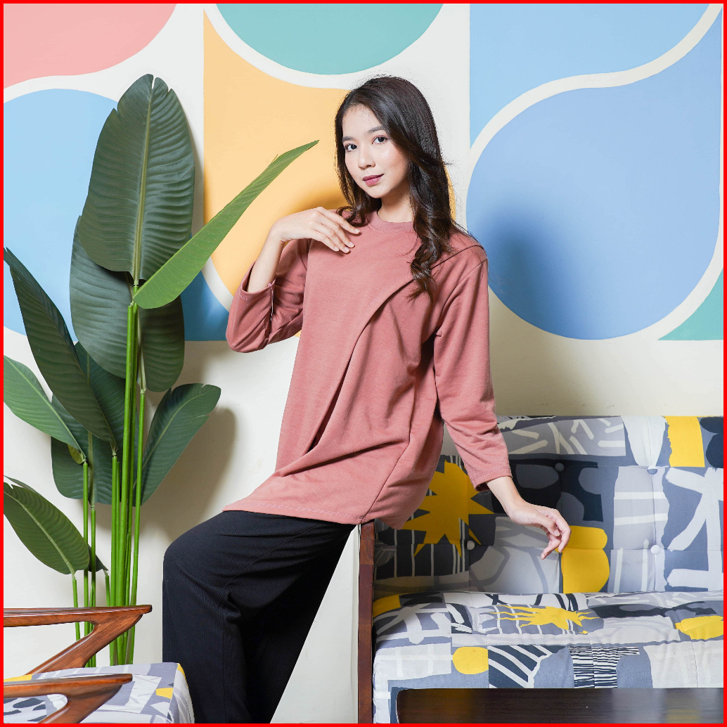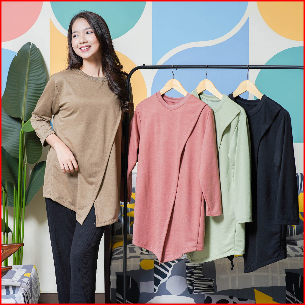 T-shirt Kimono Kaos Ovesize Asymmetical Comfy Daily Atasan Hight Slit Depan