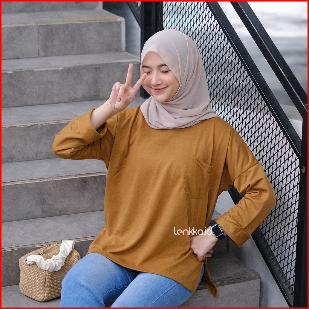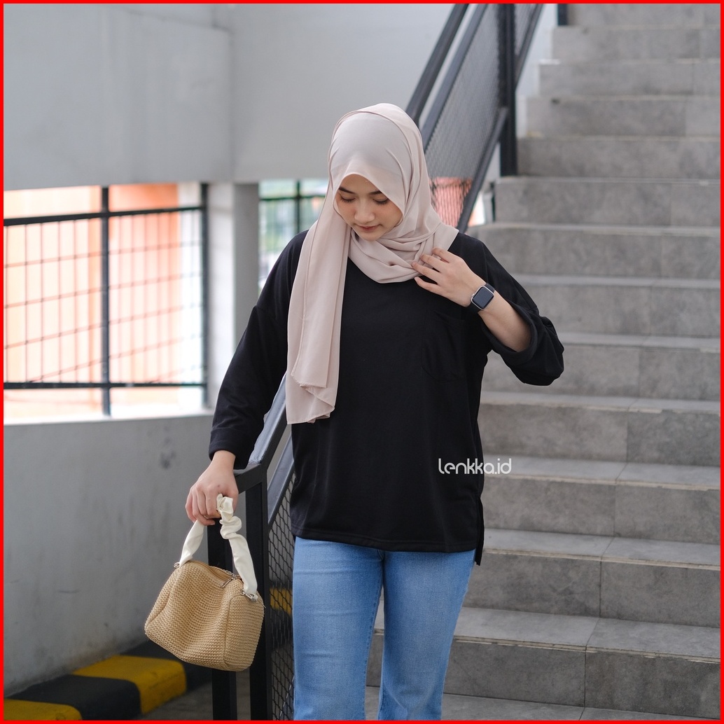 Jema Top Kaos Oversize Slit Daily Top Jumbo Basic Polos Lengan 7 8