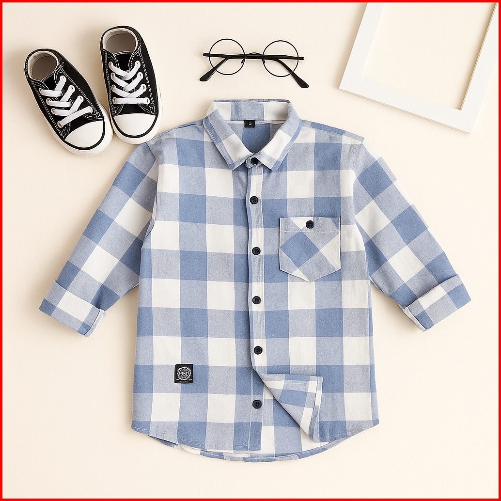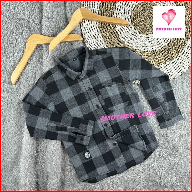 Kemeja Flanel Anak Laki-laki Lengan Panjang Motif Kotak-kotak Umur 3-13 Tahun