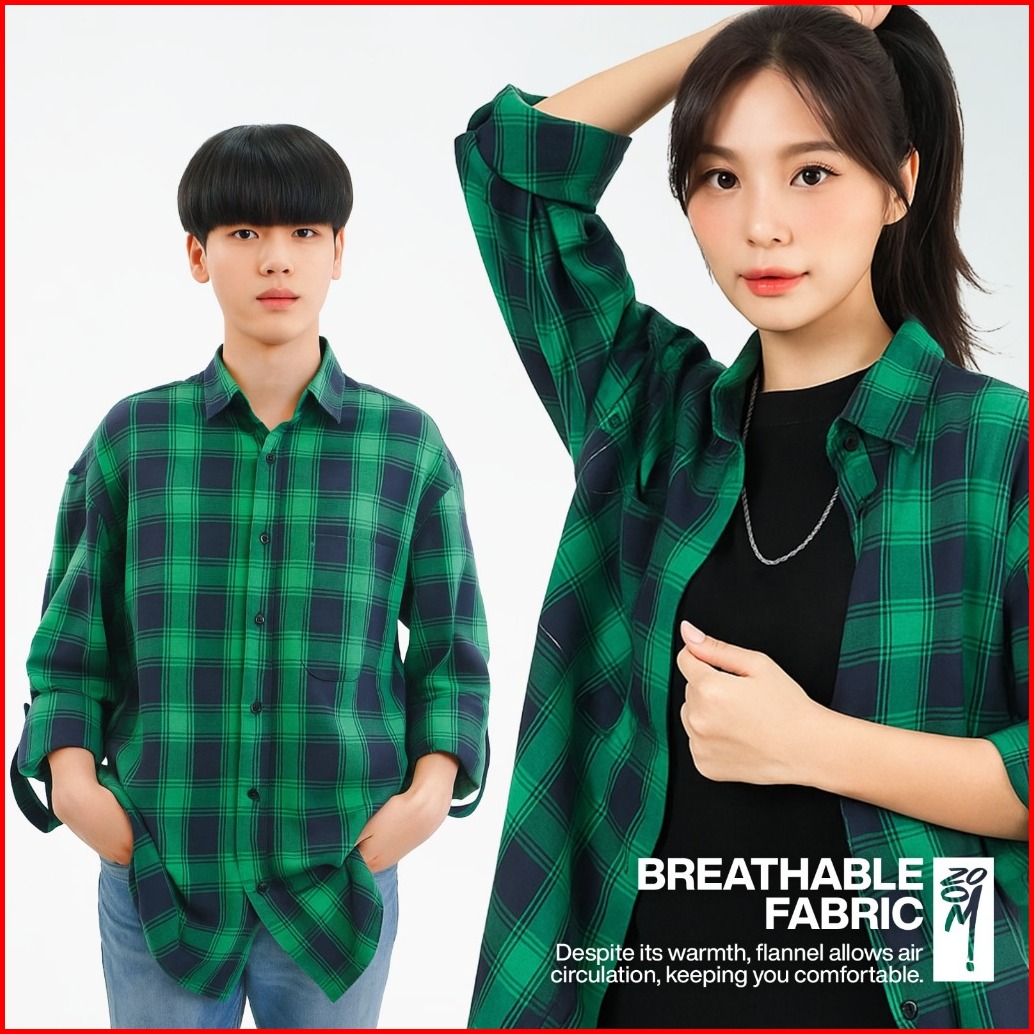 Zoomi Kemeja Flanel Motif Klasik Bahan Katun Halus Kombinasi - Lengan Panjang Stylish