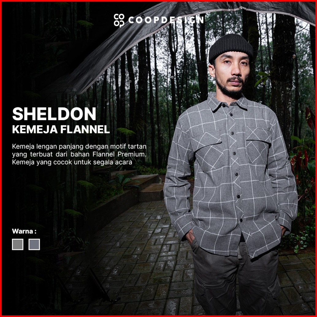 New Arrival Coop Design - Sheldon Kemeja Flannel Tartan Flanel Kotak-kotak Pria Lengan Panjang