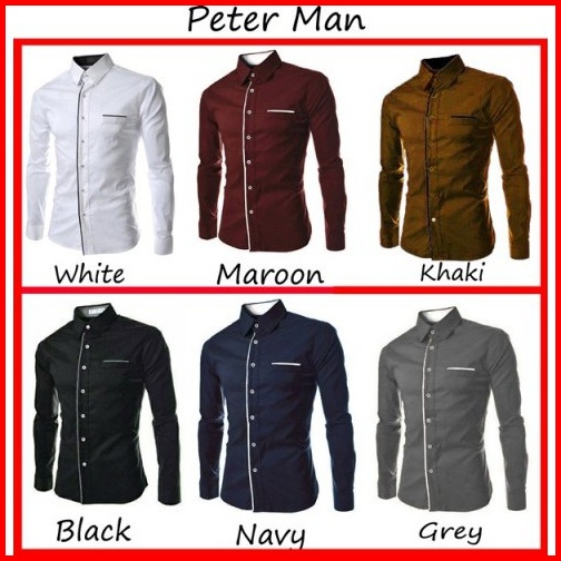 Hem Peter Kemeja Polos Pria Lengan Panjang Slimfit Kemeja Kerja Formal Cowok Warna Putih Hitam Navy
