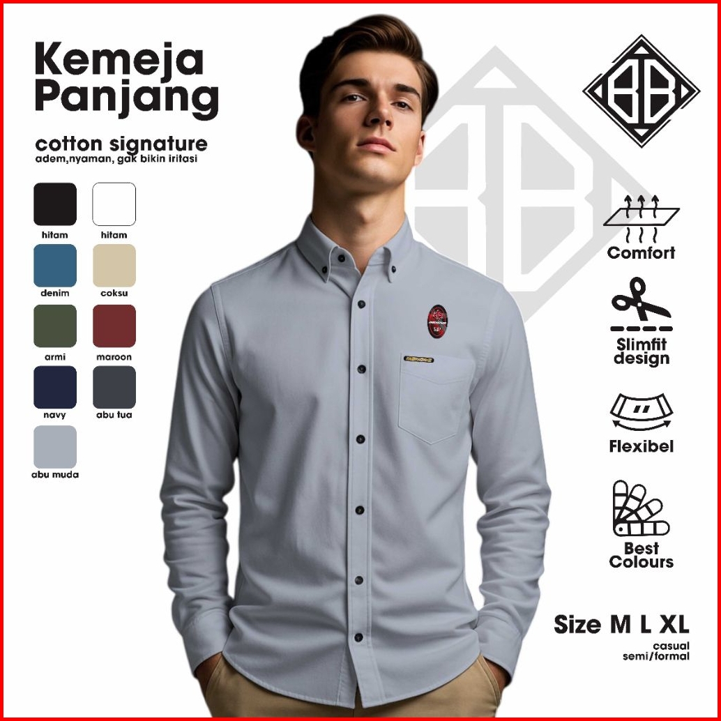Kemeja Lengan Panjang Polos Pria Slimfit Kantor Kerja Formal Bahan Premium
