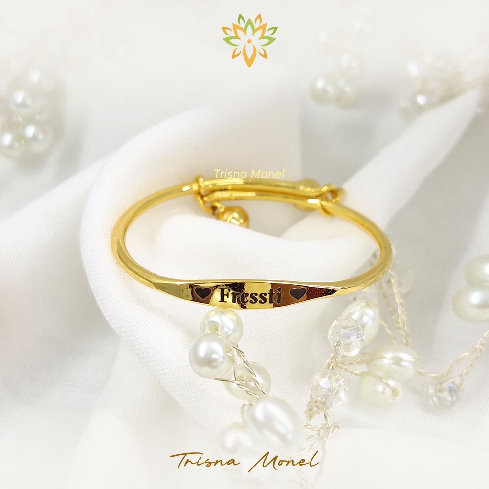 GELANG LONCENG ANAK LAPIS kuning mengkilap CUSTOM NAMA