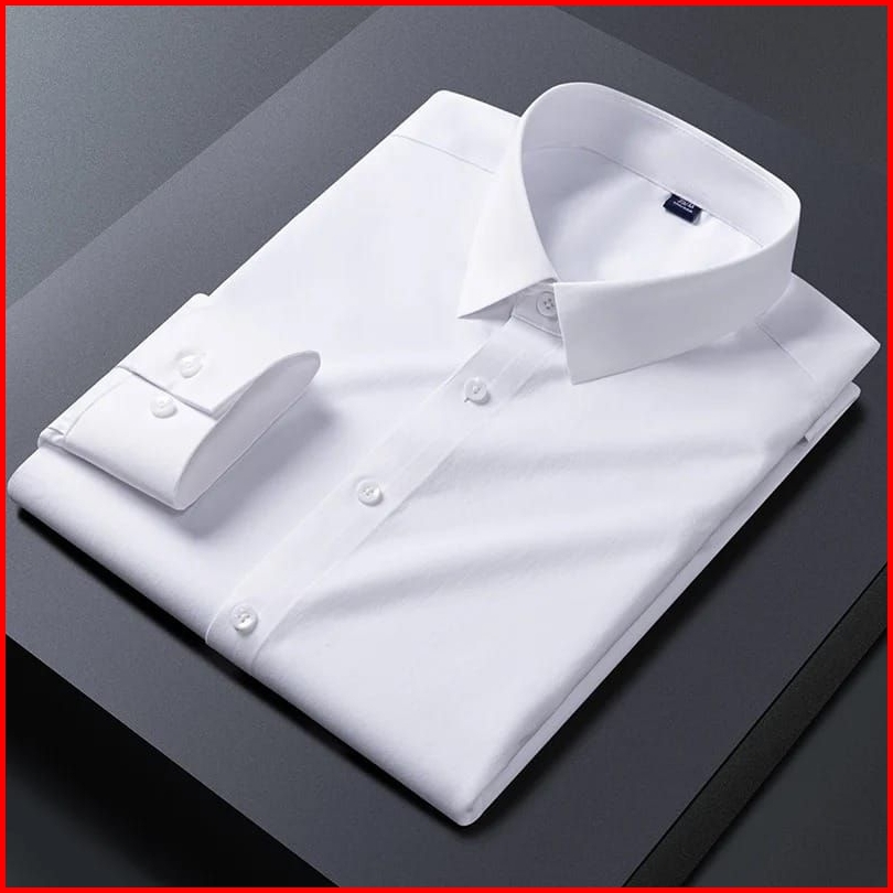 Kemeja Polos Pria Lengan Panjang Dewasa Kasual Formal Hitam Dan Putih