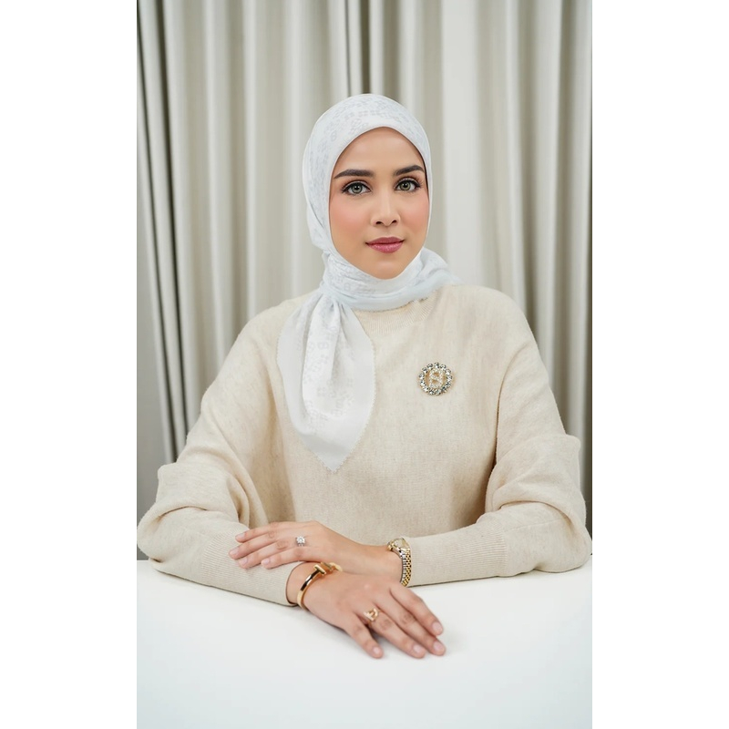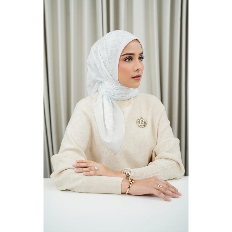 BUTTONSCARVES - Monogram Scrambel Voile Square - Lucent White / Hijab Segi Empat