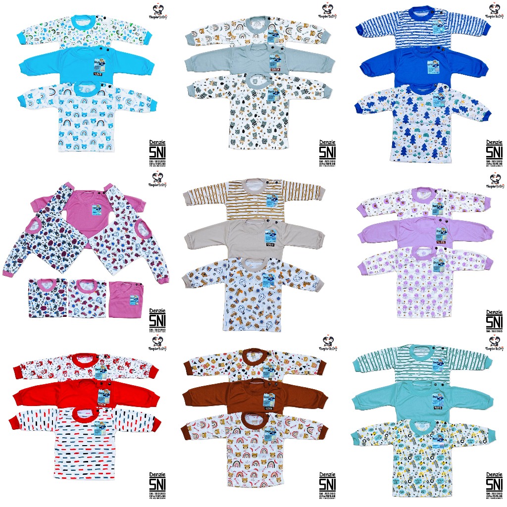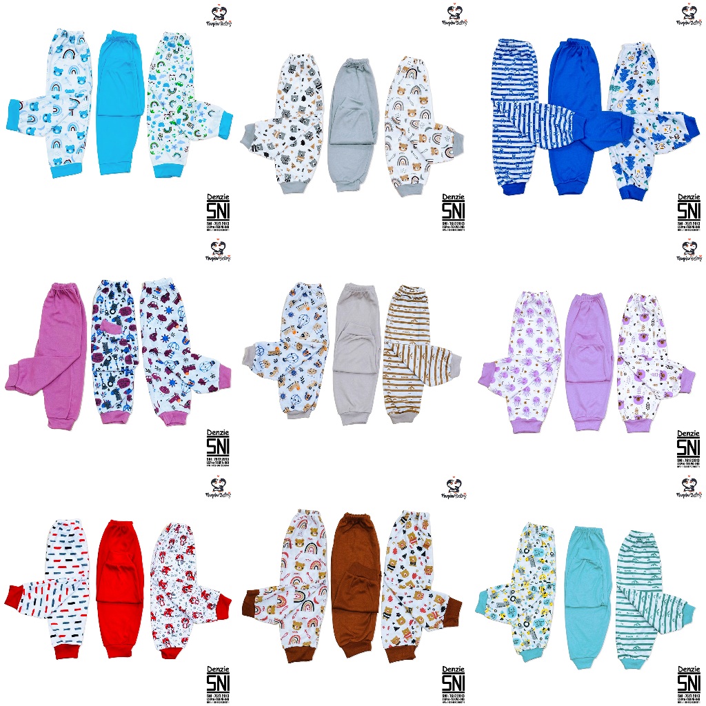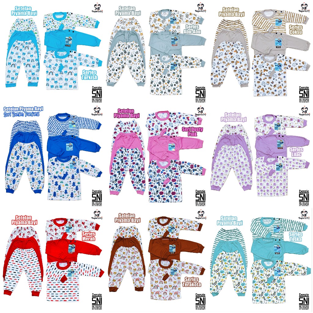 Terlaris No. 1 | Paket 3 Set Baju Piyama Bayi Denzie SNI Setelan Panjang Usia 3-24 Bulan Unisex