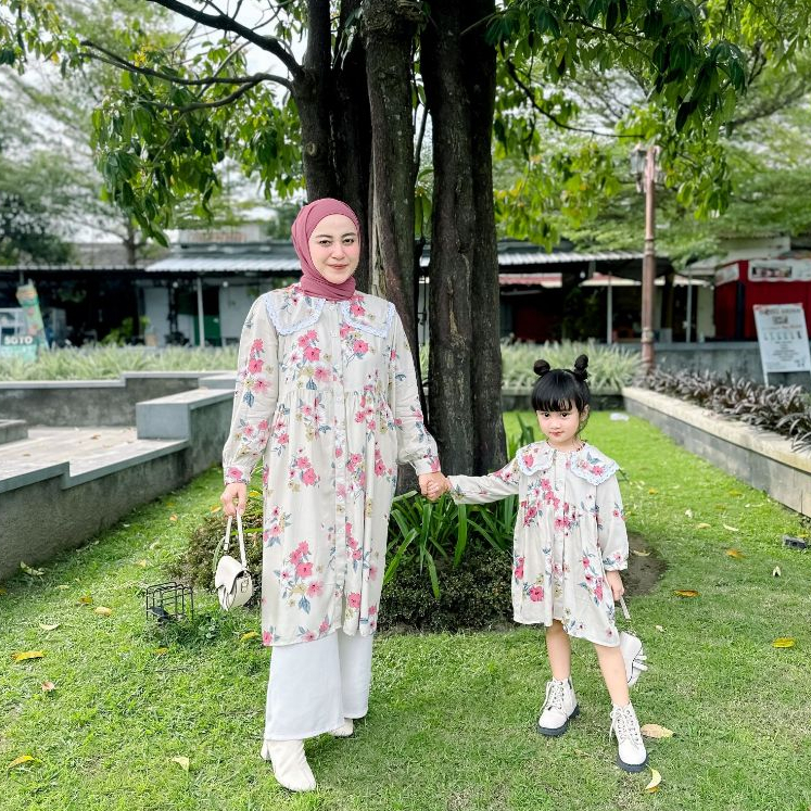 Kalsandfrey Hannah Tunik Couple Mom And Kids Baju Kembar Mama Anak Perempuan Bahan Premium Sarimbit