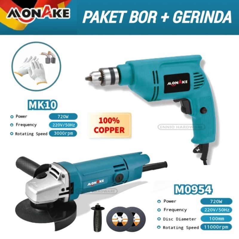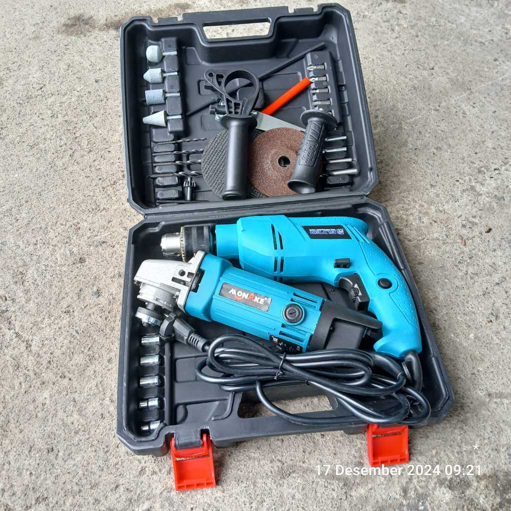 2 ITEM BOX KOPER SET ISI MESIN BOR TANGAN LISTRIK 350W SET DAN GERINDA POTONG/POLES RH 435-12