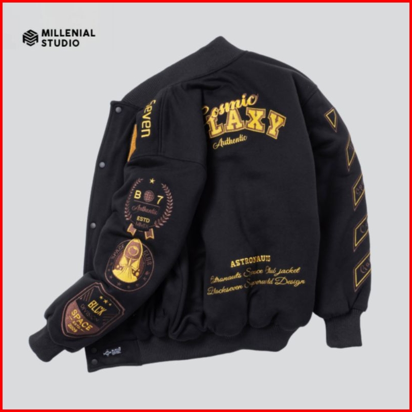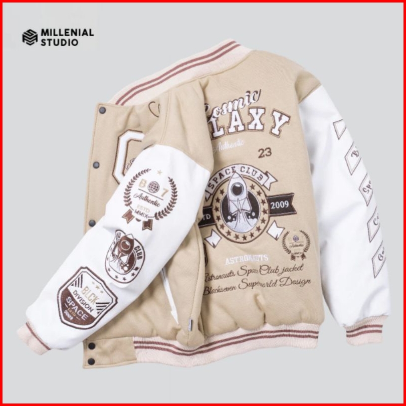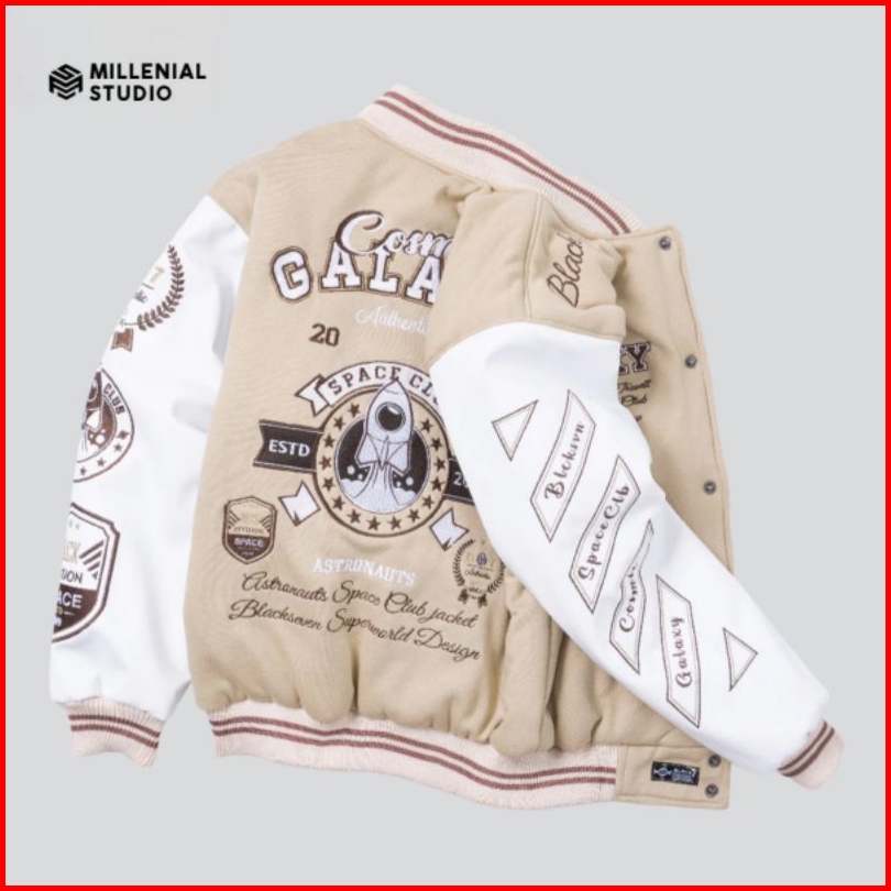 Varsity Jacket Cosmic Galaxy Cream White Jaket Baseball Bordir Ori Blackseven Millenial Studio