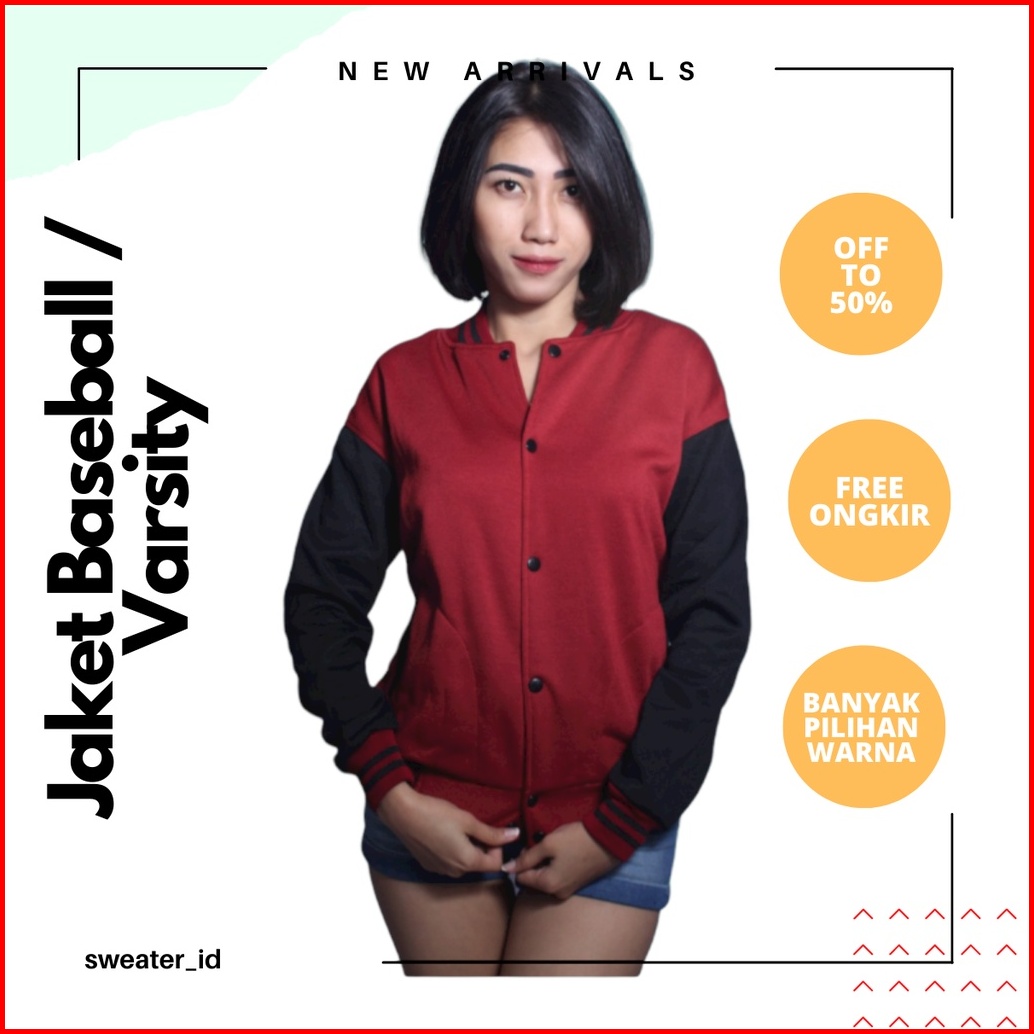 Jaket Varsity Jaket Baseball Jaket Pria Jaket Wanita Maroon-hitam Polos