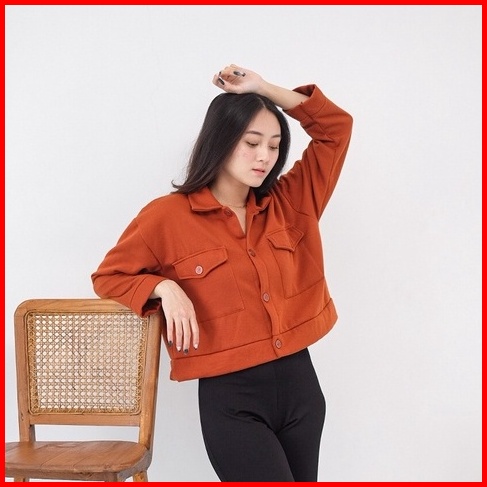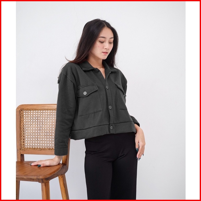 Locy Jaket Pocket Wanita Semi Crop Button Fleece
