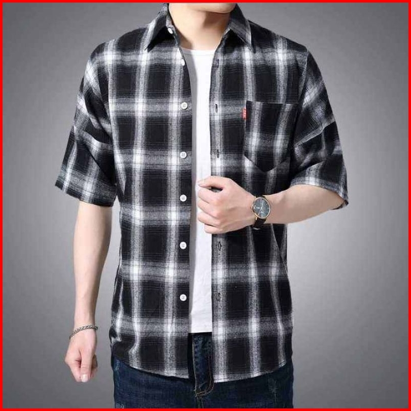 Kemeja Flanel Oversize Lengan Pendek Pria Wanita Kualitas Premium Kemeja Pria Pendek Dewasa