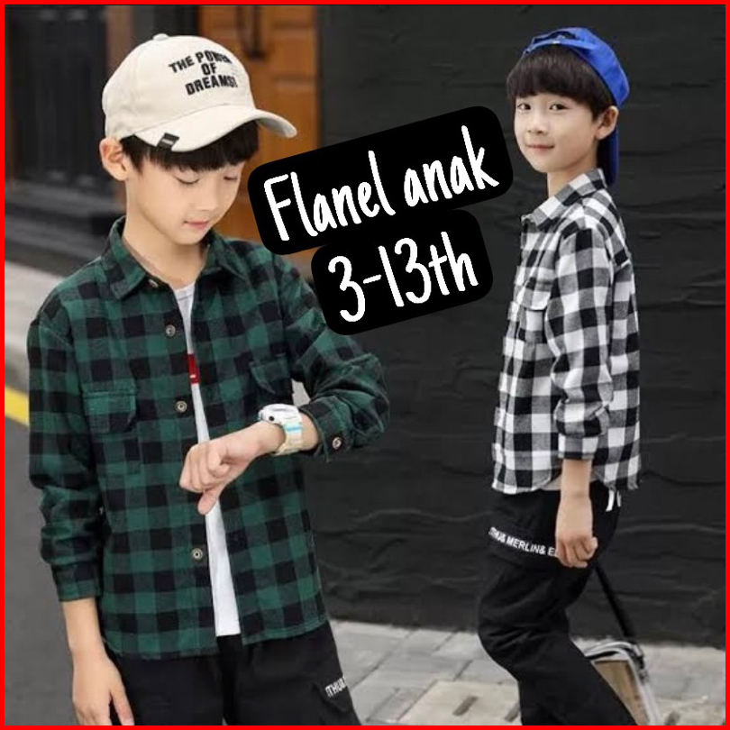 Kemeja Flanel Anak Laki Lengan Panjang Motif Kotak Kotak Usia 3 Sampai 13 Tahun