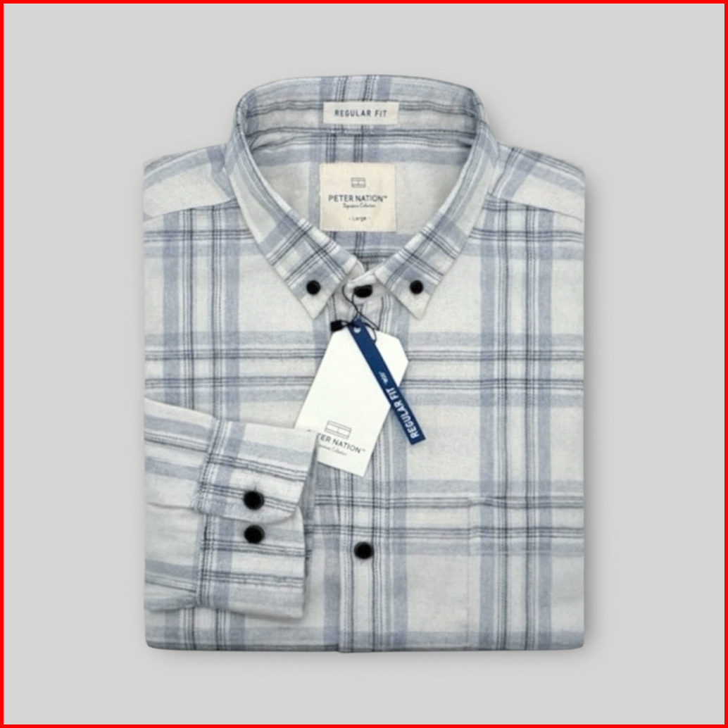 Peternation Kemeja Pria Flanel Wool Broken White Basic Panjang Regular Fit