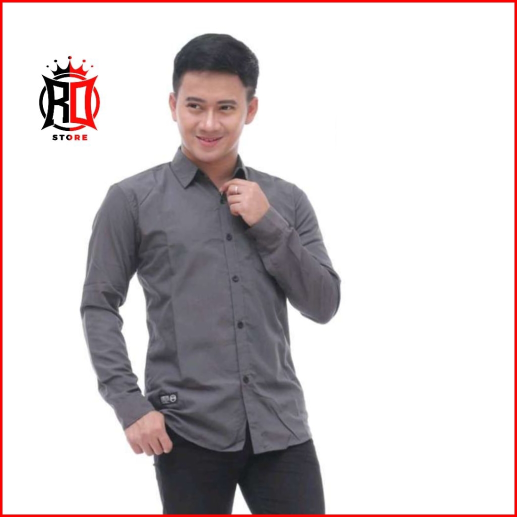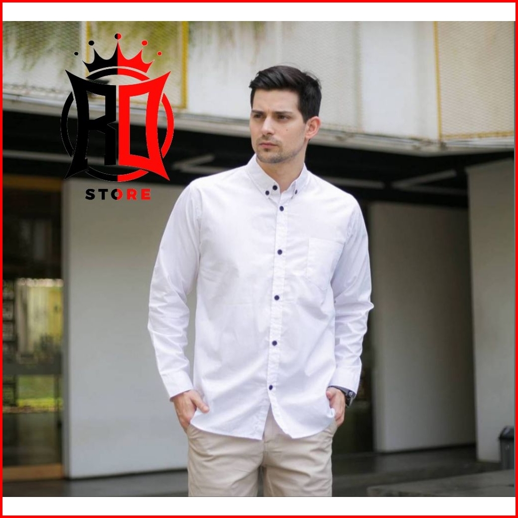Kemeja Polos Lengan Panjang Warna Putih Slimfit Casual Baju Hem Pria