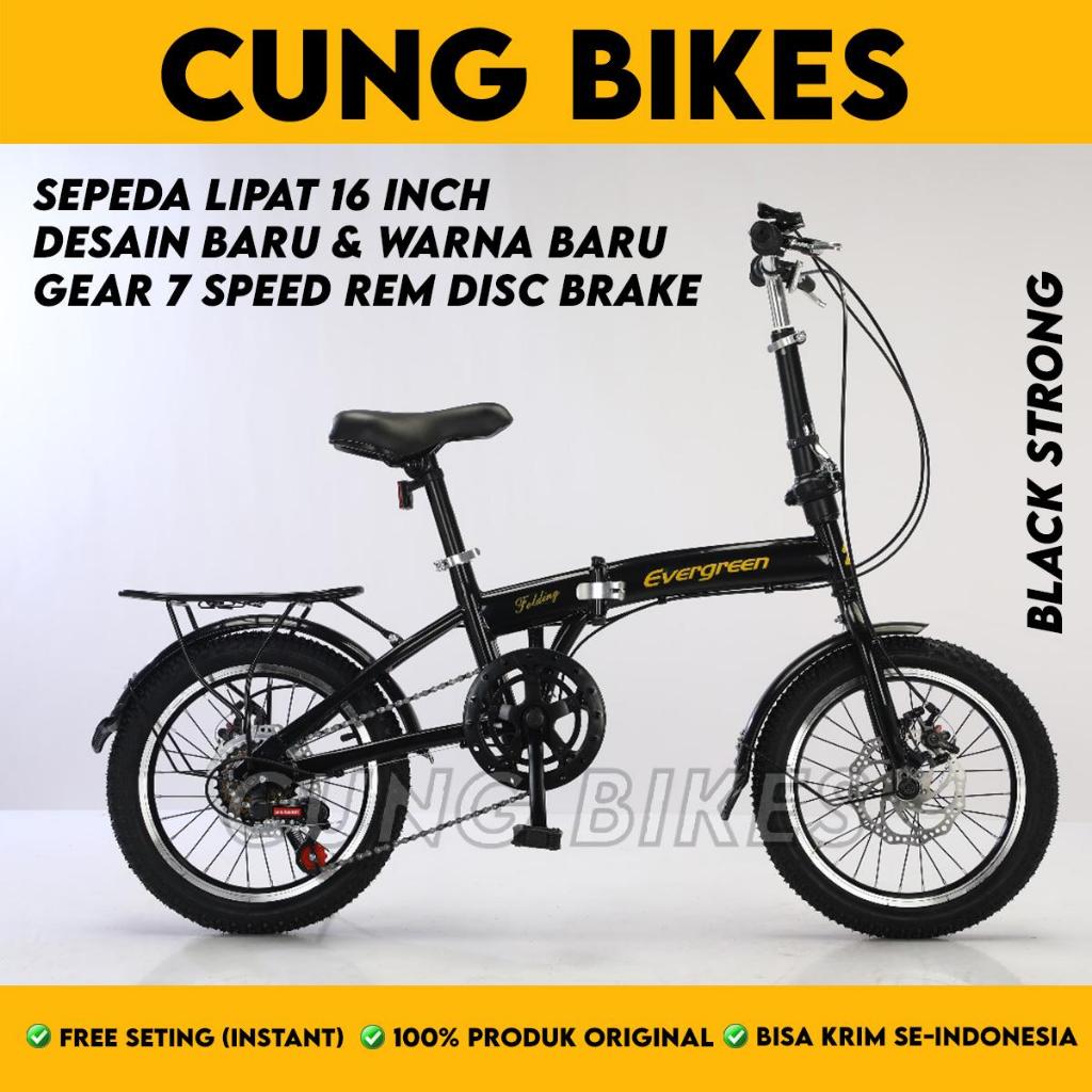 SEPEDA LIPAT ANAK UKURAN 16 MERK EVERGREEN 7 speed Disc Brake Cakram