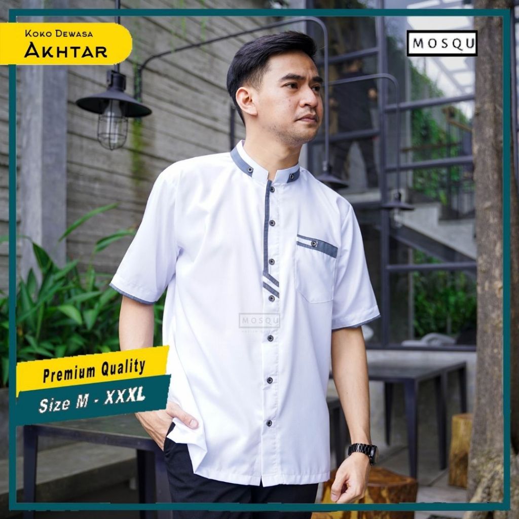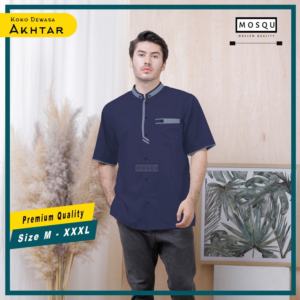 Mosqu Akhtar Baju Koko Pria Dewasa Lengan Pendek Kemeja Koko Size S - 4XL